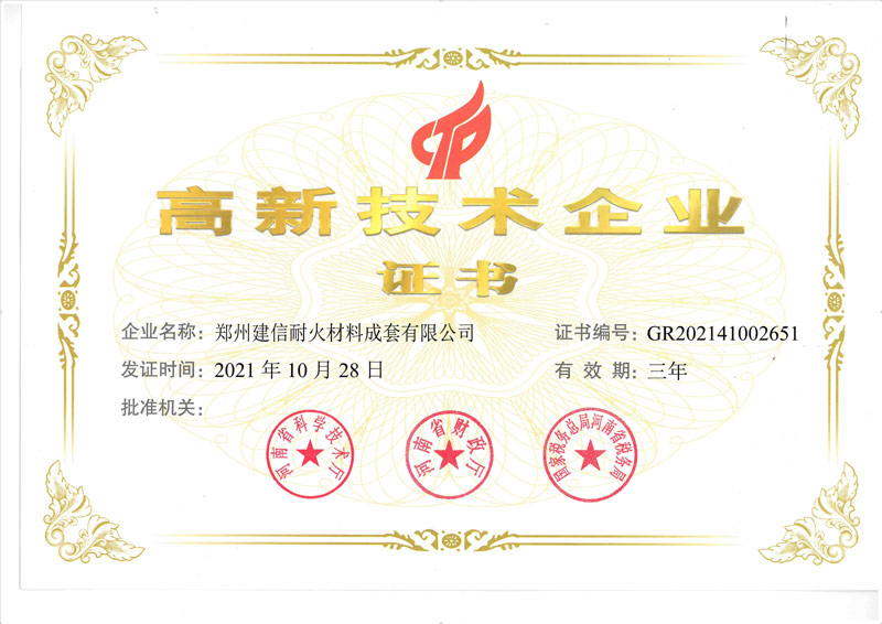 鄭州建信耐材先后參與起草國家建材及行業(yè)標準:《高鋁抗剝落磚、系列耐堿磚及系列硅莫磚》、《水泥回轉(zhuǎn)窯協(xié)同處置用耐火材料抗侵蝕實驗方法》、《耐火材料及砌筑使用規(guī)程》和《石灰窯砌筑技術(shù)條件》。公司近年來先后榮獲“國家科技型企業(yè)”、“高新技術(shù)企業(yè)”、“河南省綠色工廠”“河南省綠色發(fā)展先進型企業(yè)”“環(huán)??冃級企業(yè)”、鄭州市“專精特新企業(yè)”“市長質(zhì)量獎”等殊榮。
