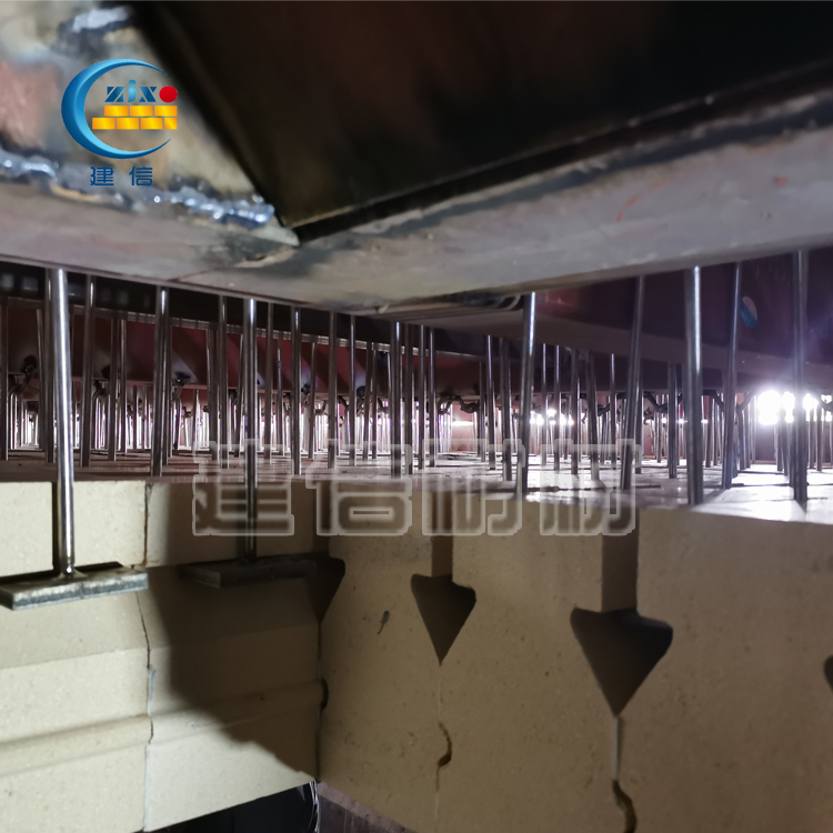 主要應(yīng)用于冶金加熱爐爐頂、玻璃熔窯大碹吊掛結(jié)構(gòu)及石化裂解爐輻射段錨固件,作為承重骨架長(zhǎng)期承受1400-1600℃高溫與機(jī)械荷載,使用壽命8-12年,較傳統(tǒng)黏土吊掛磚延長(zhǎng)2倍以上,且預(yù)埋金屬錨固件無(wú)熔損風(fēng)險(xiǎn),是高溫工業(yè)窯爐安全運(yùn)行的核心承重組件。
